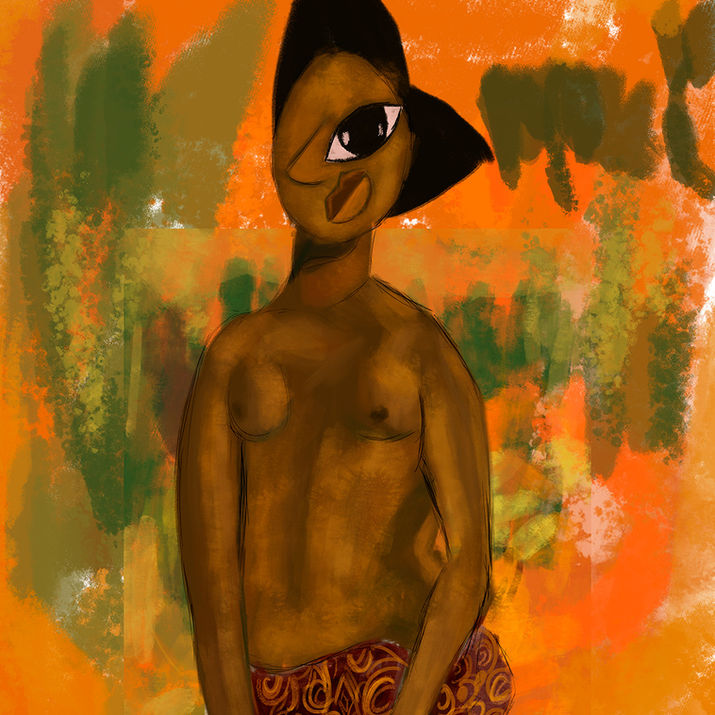 Through recurring motifs such as one-eyed figures and totemic forms, he questions selfhood, memory, and transformation. Each medium whether textile, canvas, or digital becomes a space for dialogue between the personal and the collective.
