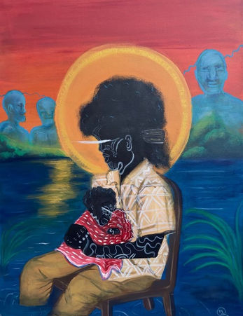 Reclamation: From Mother to Mother is a visual story about mothers, home, and the wisdom that is passed on. Rooted in Oron proverbs and my own lived experience, the series reflects on how women carry culture, love, and memory across distance. Each painting reimagines motherhood as a bridge between worlds—a quiet act of resistance and remembrance.